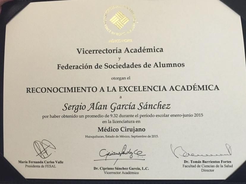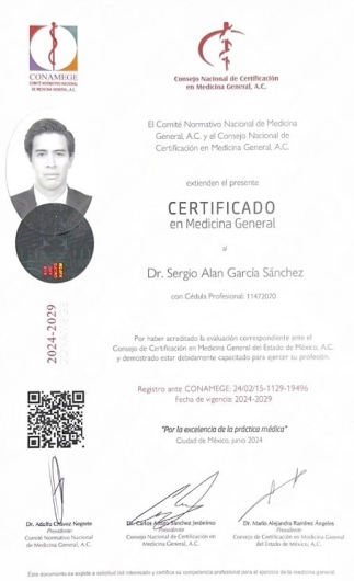 Hola. Soy el Dr. Sergio Alan García Sánchez. Soy médico egresado de la Universidad Anáhuac México Norte, certificado por el CONAMEGE.